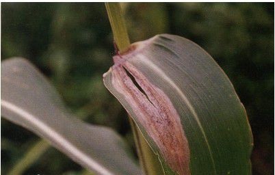 癥狀 主要發(fā)生在比較冷涼的深丘區(qū)和山區(qū),可危害所有玉米類型。 病菌主要危害葉片,也可侵染葉鞘和苞葉。植株感病后,常使葉片干枯,重者全株枯死,產(chǎn)量失收,輕者生長不良,造成減產(chǎn)。株高70~100厘米時,先由基部葉片發(fā)病,漸及上部,嚴重時能遍及全株。發(fā)病初期,葉片上出現(xiàn)水漬狀青灰色或灰綠色斑點,然后沿葉脈向兩端擴展,形成棱形或長紡錘形大斑。斑中央淡褐色,邊緣暗褐色。病斑寬可達1~2厘米,長15~20厘米。天氣潮濕時,病斑上可產(chǎn)生黑灰色霉狀物(分生孢子)。發(fā)病嚴重時,病斑增多,連成大片,整株枯死。